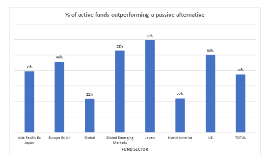 Over the last ten years, only 38% of active equity funds outperformed the typical passive alternative across seven key investment sectors, which doesn’t exactly put bums on seats.