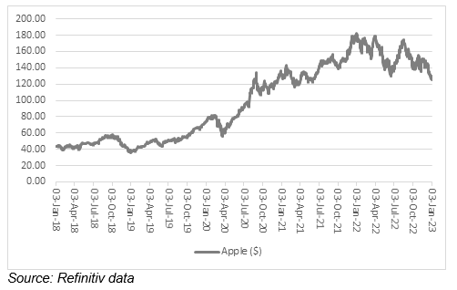 Apple stands in marked contrast to Meta, Amazon, Netflix, Google’s parent Alphabet and Microsoft, as it did not issue a profit warning or miss analysts’ expectations during calendar 2022.