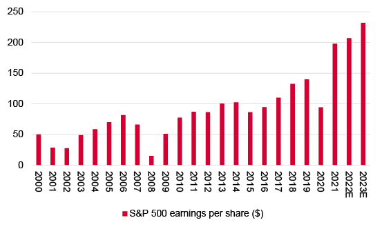 US earnings estimates still call for new peaks in 2022 and 2023 …