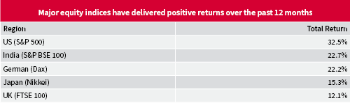 It’s been a prosperous time to have invested in the markets. Each one of the major share indices around the world has delivered a positive total return over the past 12 months, factoring in share price performance and dividends.
