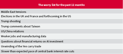 Over the past year alone, there have been major political elections in the UK, US and France. The unwinding of the Yen carry trade caused brief chaos on markets over the summer. Investors who had borrowed in the cheap Japanese currency to invest in higher yielding assets closed their positions when the Bank of Japan pushed up rates.
