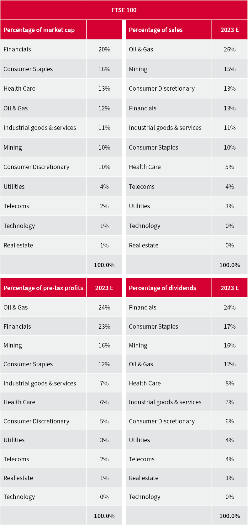 Again, bulls will argue that this is where the opportunity may now lie, if indeed a 40-year era of cheap money, cheap energy, cheap labour and cheap goods is coming to an end, as the FTSE 100’s exposure to real assets, in the form of commodities, real estate and property, could offer some hedge against the ravages of inflation relative to paper ones like cash or bonds.