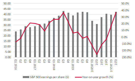 Case for: US earnings are receiving strong support from leading tech stocks, with the Technology sector forecast to generate 23% of 2020 earnings, according to IBES data from Refinitiv. That in turn is underpinning consensus analysts’ forecasts that are calling for a V-shaped recovery in corporate earnings, with the Financials, Consumer Discretionary, Industrials and Energy sectors also contributing strongly. Bottom-up estimates from FactSet suggest US corporate profits will be growing again on a year-on-year basis by Q1 2021 and will rise by 21% in 2021 as a whole.
