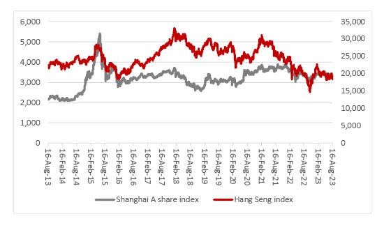 The Chinese and Hong Kong stock markets have made little progress in the last five years