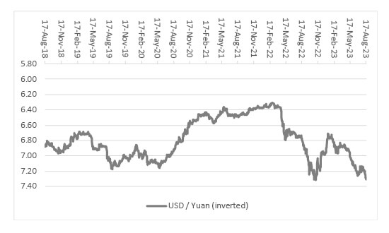 … but the currency is weakening as a result