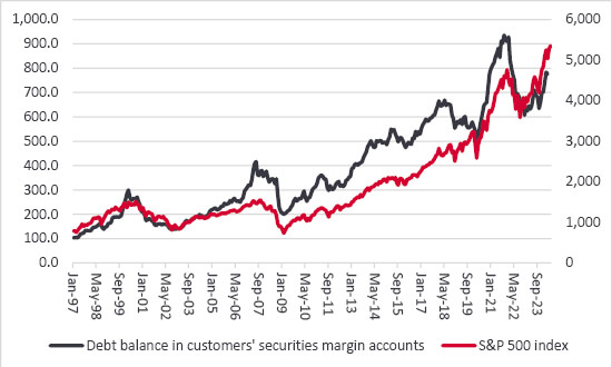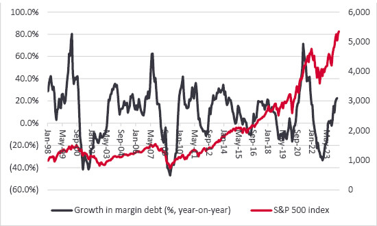 However, the use of margin debt continues to flourish in the USA, even if overall levels are still slightly below their record highs.