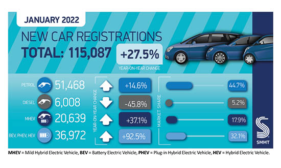 EVs account for one in six car registrations in January