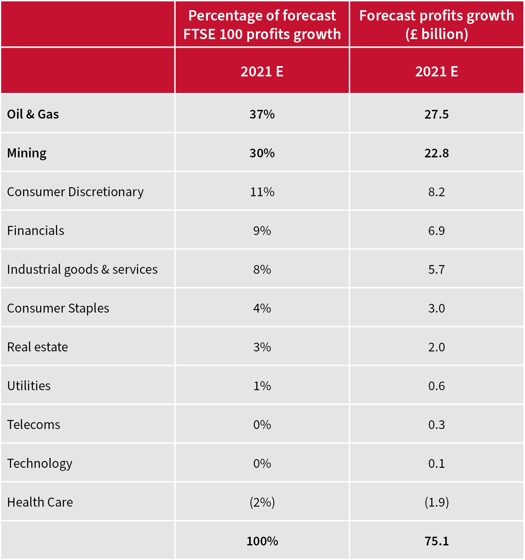 Oils are expected to be the FTSE 100’s biggest profit growth generator in 2021