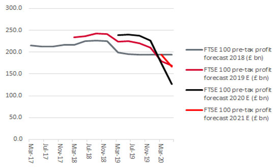 At the moment, pre-tax income is seen reaching £166 billion in 2021. That is just less than the members of the FTSE 100 generated between them in 2017, to suggest analysts feel the recovery will be a tepid one, at least initially.