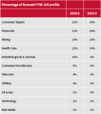 For example, it may be a source of relief to some advisers and clients, either on ethical or purely financial grounds, that oil stocks are no longer expected to be big profit contributors to the FTSE 100, at just 2% of the total in 2020. Looking at that, they may not be able to do much more damage either and could be a source of potential upside if oil and gas prices forge a sustained and unexpected recovery.