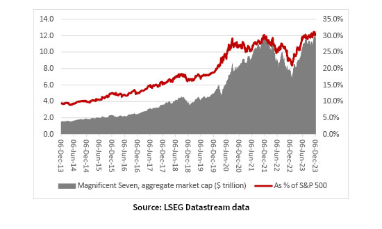 Magnificent Seven’s market cap represents 30% of the S&P 500