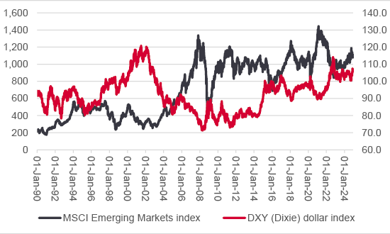 Emerging markets are traditionally very sensitive to the dollar, as many developing nations tend to borrow in bucks, and a strong US currency increases the cost of servicing that debt, to the detriment of local growth and investment. Advisers and clients with emerging market exposure will therefore be watching US trade policies with particular care.