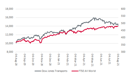 “It is therefore of some concern to see America’s Dow Jones Transports brushing up against the buffers. Bullish advisers and clients will feel happier if transports can start steaming higher once more.”