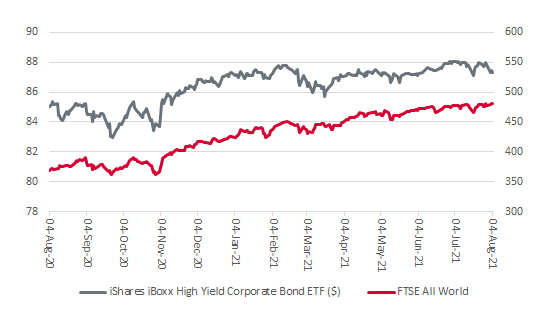 4. Junk bonds. High-yield bonds lie at the riskier end of the fixed-income spectrum as their more pejorative name of ‘junk’ bonds would suggest. The issuers have creaky balance sheets, volatile cash flows or both, and they need to pay a higher coupon as a result to attract buyers of the paper. They can trade a bit like equity, such is their risk profile, so bulls of stock markets will be pleased to see the US-listed iShares iBoxx High Yield Corporate Bond ETF (HYG:NYSE) performing well. This may be down to the ongoing reach for yield in a low-rates world, but the tracker is trading near six-year highs and is not close to going below the $80 level, a move which proved to be a harbinger of wider market volatility in 2008, 2015 and 2020.