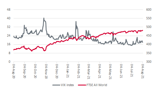 5. Volatility. Volatility can be the friend of the adviser or client – it can provide chances to sell stock expensively or buy it cheaply – but history shows that stock indices progress best when they make serene progress and a series of modest gains tend to fare less well when trading is choppy and there are big swings up and down. America’s VIX, the so-called ‘fear index’, stands well below its lifetime average of 19, which points to bullish sentiment. Equally, the reading is creeping up, just as copper and the transports are creeping down. This may just be a case of summertime lassitude, but it could be a sign that something is about to give the bull equity market its latest test, be it inflation, the pandemic, central bank policy or (more likely) an exogenous event.
