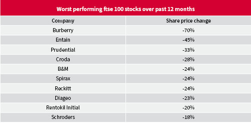 Worst performing FTSE 100 stocks over the past 12 months