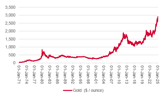 This year’s record highs in the US, UK and German stock markets continue to make headlines, but another, much more unsung asset is also breaking new ground and that is gold, which is trading above $2,900 an ounce for the first time this week.