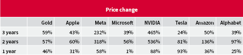 Gold’s 46% surge in the past year has even outpaced four of the so-called Magnificent Seven, despite markets’ ongoing fascination with technology stocks and all things AI-related, and apparent disinterest in the precious metal.