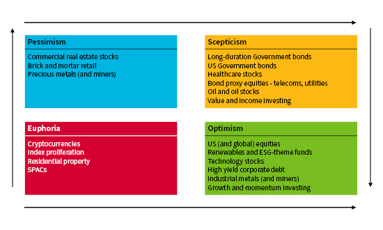 Analysis of those performance statistics means this column currently sees the major asset classes like this as we head into summer 2021, using Sir John Templeton’s four phases as a framework.