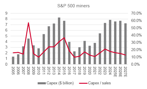 Granted, the materials sector is not a pure play on mining and metals, as steels, chemicals and other cyclical industries feature (many of them the ones that President Trump’s tariff plans are trying to prop up and save). But the lack of interest in both sectors is startling, especially when their spending discipline and frugality contrasts so markedly with the tidal wave of spending unleashed by those who are scrambling to cement a leading position in AI. Such is the scale of their outlay, that investors are becoming more nervous about funding and the returns that may be accrued, with some even wondering whether, on the horizon, lurks a spending bust to match that witnessed when the technology, media and telecoms bubble collapsed in the early 2000s.