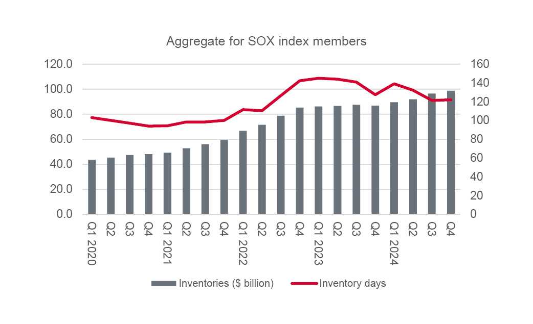 Inventories and capex can be a good guide to future SOX total profit trends Source: Company accounts
