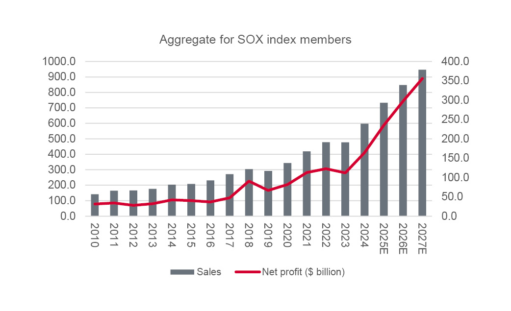 SOX index members’ profits are forecast to boom in 2025-27
