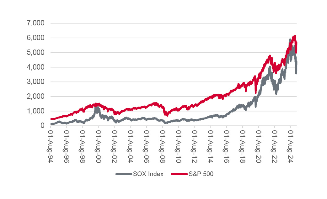 The SOX fell into a bear market early in 2025 before Trump’s tariff launch