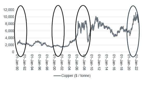 “‘Doctor Copper’ is a good guide to global economic health as the metal’s ductility and conductivity mean it is used in so many industries across the globe. The current triple-top on the chart does look spookily like that of 2006-08.”
