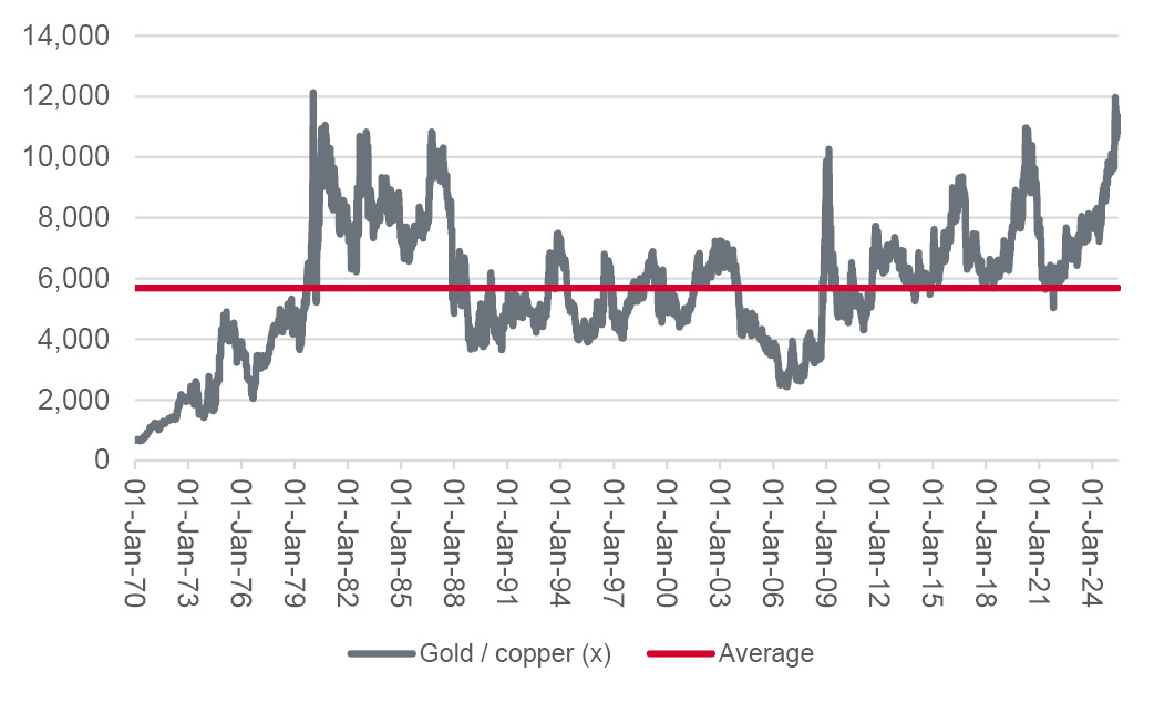 • Since 1970, one tonne of gold has on average bought nearly 5,700 tonnes of copper. It currently just over 11,100 tonnes.