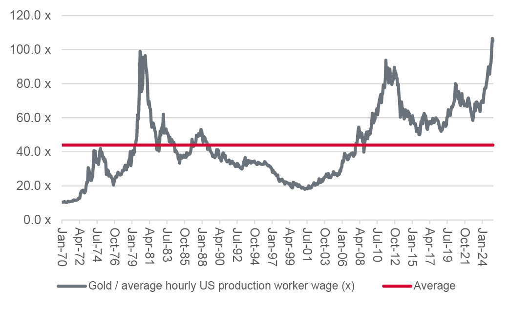 Before US President Nixon took America off the Gold Standard and smashed up the Bretton Woods monetary system in August 1971, it took a blue-collar American worker 12 hours to earn enough to buy an ounce of gold. That figure peaked at 97 hours in late 1980 and 94 hours in 2011. In this context, the current score of 105 hours could be seen as ominous for gold affordability, since the best cure for high prices is high prices – they stoke supply, depress demand, prompt searches for substitutes or all three.