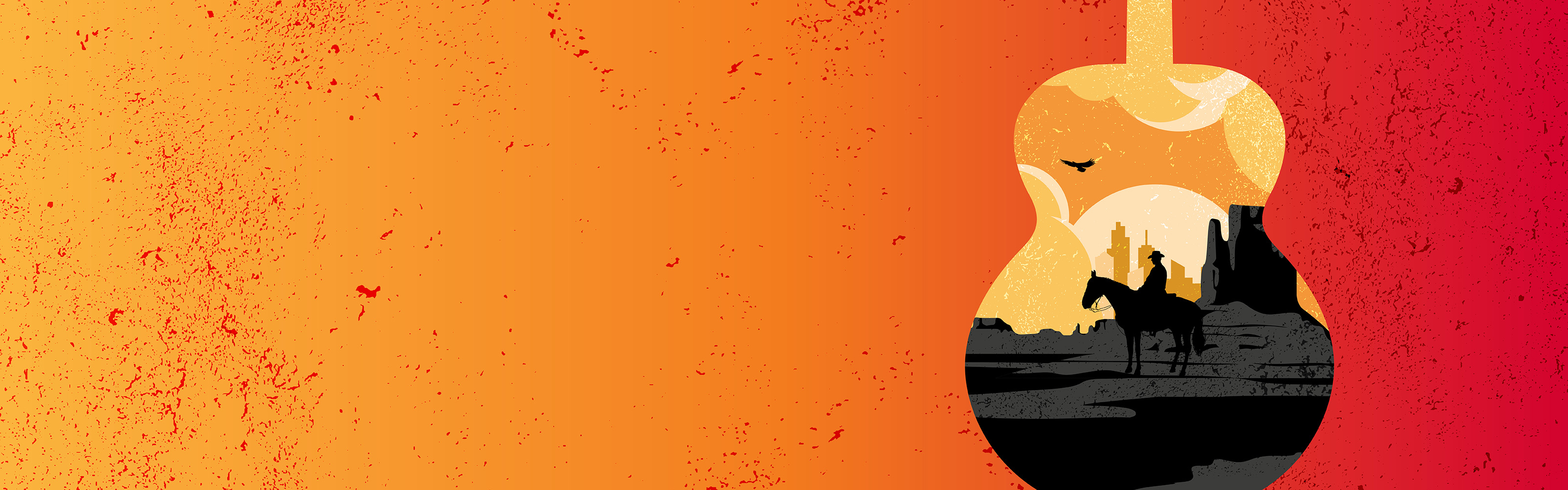 Orange banner with guitar graphic