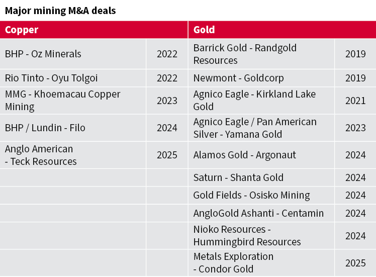 The putative coming together between Anglo American and Canada’s Teck Resources is the fifth $1 billion-plus merger and acquisition deal with a major focus on copper mining since 2022. Gold saw a similar rash of activity between producers of the precious metal earlier this decade, and the commodity price has since gone into orbit. It now remains to be seen whether copper miners’ management teams are similarly ahead of the game and providing advisers and clients with a hint as to where big commodity and share price moves may be coming next.