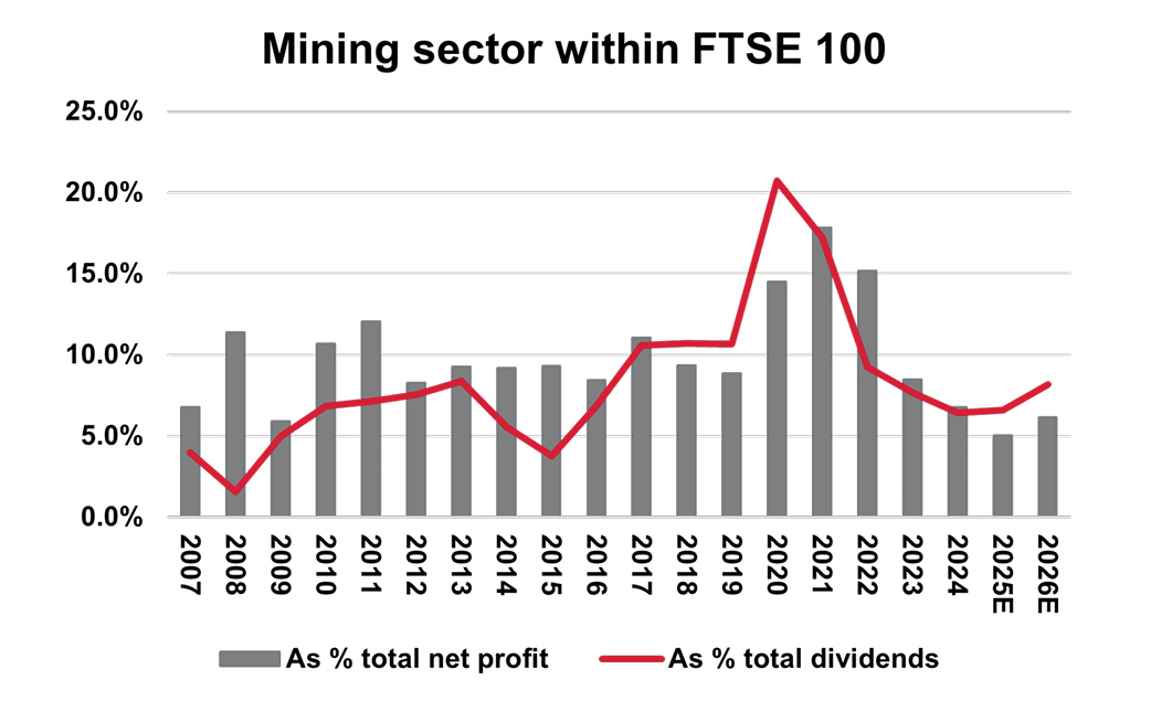 Miners’ profit and dividend contribution to FTSE 100 is nearer to historic lows than the highs