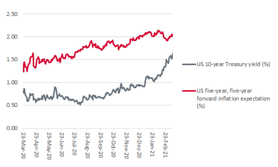 It is almost a year to the day (23 March 2020) since the FTSE 100 bottomed at 4,994 amid widespread fear over what the pandemic could do to global growth and corporate profits (amongst other things). Dividend cuts were picking up speed, oil prices were on their way into negative territory (if only briefly) and perceived ‘haven’ assets such as the dollar, gold and bonds were performing strongly. Pessimism prevailed.