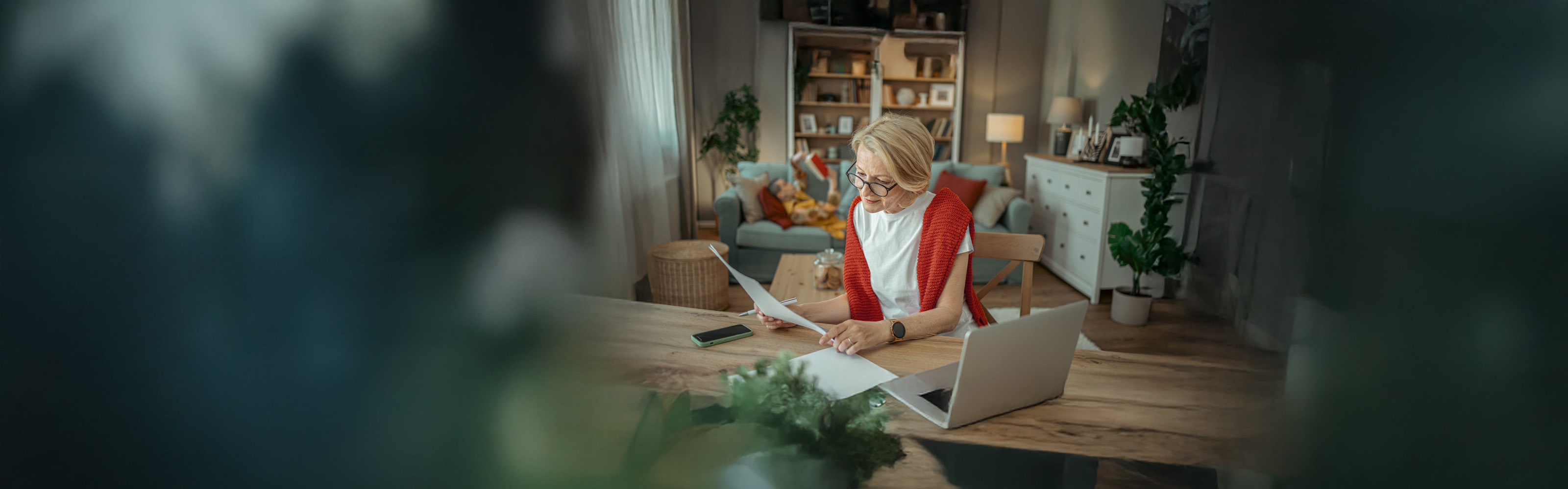 woman looking at paper