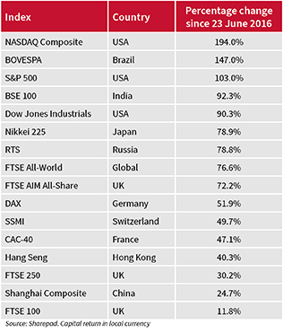 FTSE 100 is the worst performing major index since the Brexit vote in June 2016.