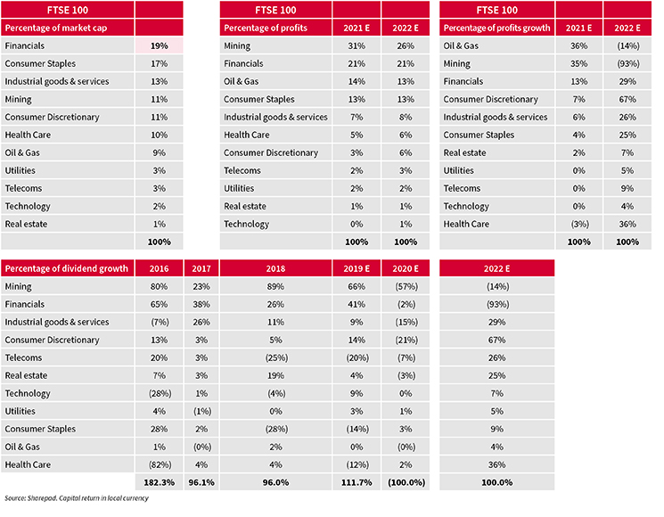 FTSE 100 is dominated by miners, oils and financials.
