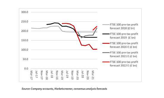 “Analysts have increased their FTSE 100 pre-tax profit forecasts by 21% for 2021 and 9% for 2022 in the last three months alone.”
