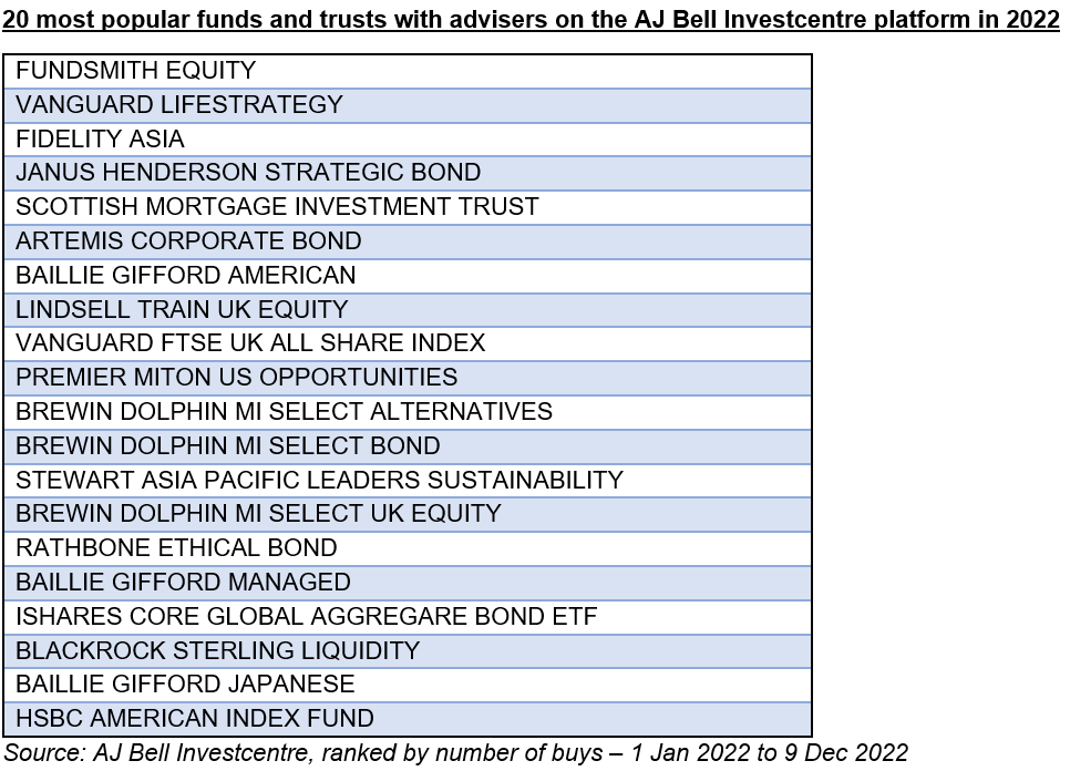 Bond funds have also proved popular with advisers in 2022, despite poor performance from this asset class. Bond yields are today much more attractive than they have been for some time, but there are still risks attached to the asset class stemming from inflation, which could continue to drive interest rates higher than expected, if it proves difficult for central banks to tame. In the UK government bond space, there will also be a significant amount of supply in the next twelve months from elevated government borrowing, alongside the unwinding of the Bank of England’s QE scheme, which could present further headwinds for the asset class.