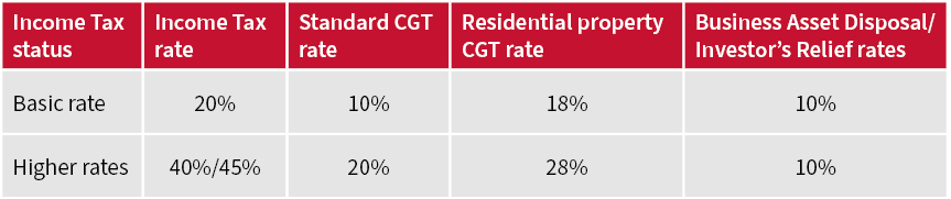 The below table compares the current tax rates for income and gains above the respective personal allowance and annual exempt amount.