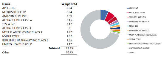 Source: iShares Core S&P 500 ETF Top 10 holdings & weightings (at 31/12/2021) – AJ Bell, iShares - January 2022