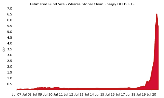 As the global climate agenda gained momentum in 2020, including the election of Joe Biden as US President in November, the strategy experienced continued growth, with assets peaking at $6.5 billion in January 2021.