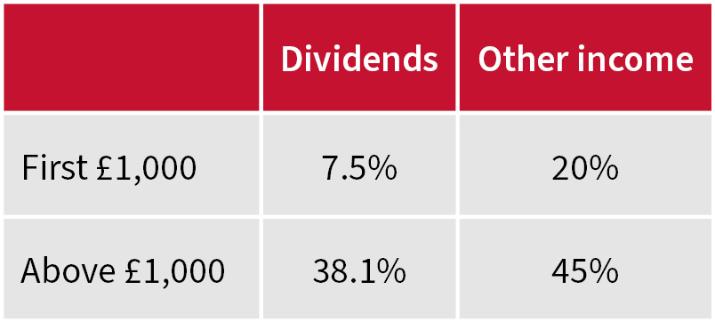 Trust income distributed to discretionary trust beneficiaries is payable with a 45% Income Tax credit in all cases, i.e. it is deemed to be trust income, regardless of its actual source. The 45% tax credit means that the beneficiary could claim some or all of the tax back if they’re a non-taxpayer or pay tax at 20% or 40% (rest of UK rates – different rates apply to Scottish taxpayers).