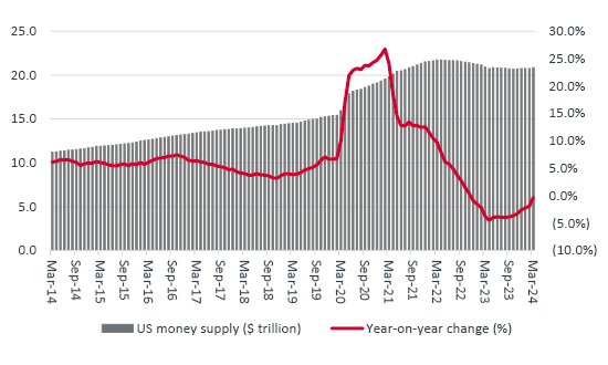 Equally, there is a residual danger that central bankers cut too early. The rate of change in the rate of change of money growth looks to be accelerating again. As a result, too much stimulus could lead to a fresh inflationary outburst, especially as unemployment is low and wage increases still exceed inflation. The outcome then could indeed be higher rates for longer and the sort of austerity and recession that purge inflation but hurt share prices at the same time.