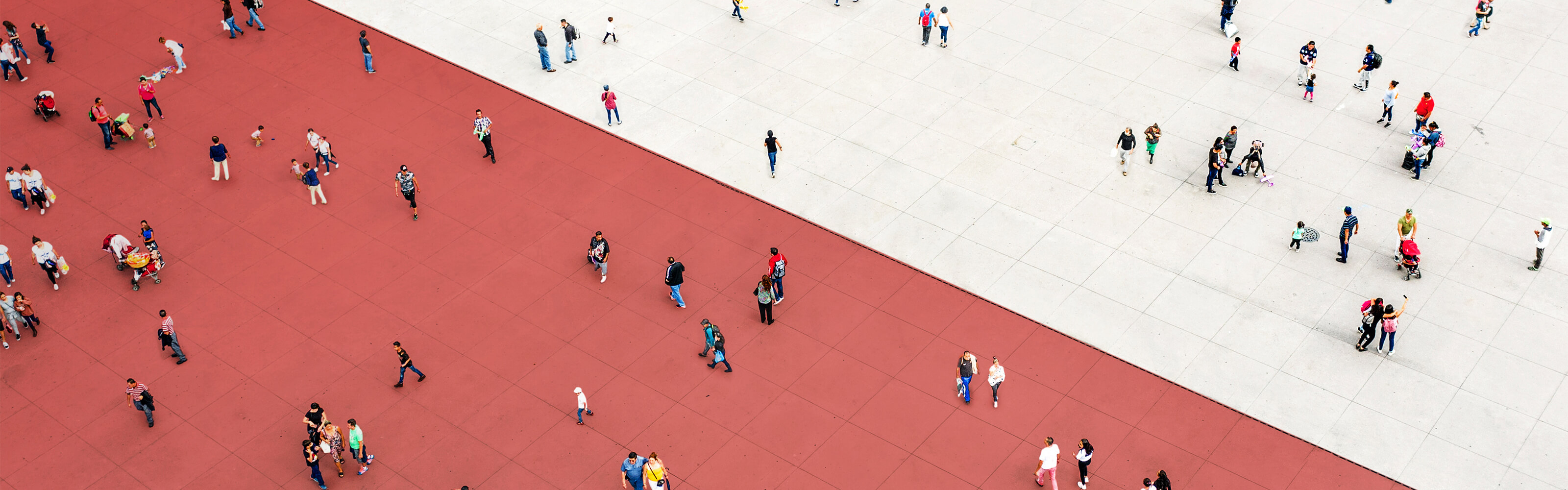 crowd of people divided by red tiles