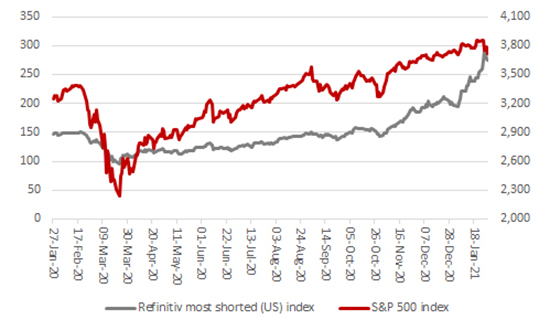 The first indicator relates to GameStop and the epic ‘short squeeze’ which has inflicted pain on hedge funds that were betting on a drop in the share price and instead were confronted by stunning gains.