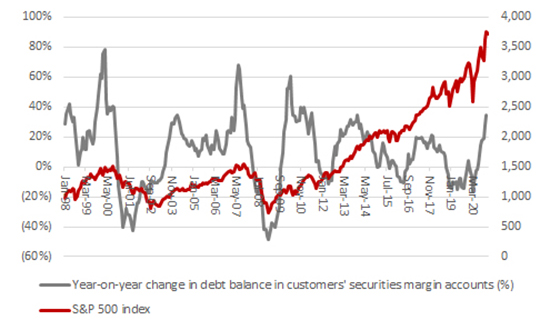“One other trend that can be a sign of animal spirits and that, as a result of which, investors and traders are perhaps taking on more risk than they would normally, is margin debt.”