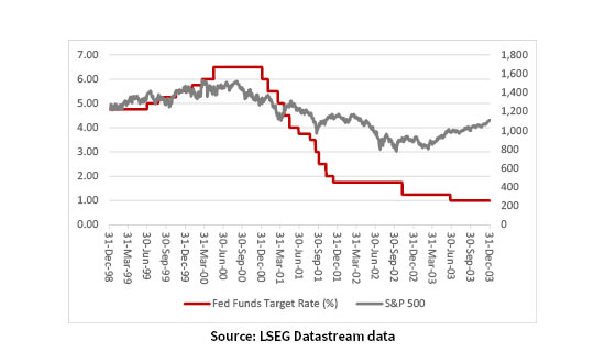 Fed rate cuts did not stop the US equity bear market of 2000-03…