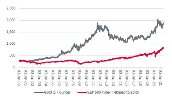 “As with any investment, the price (or valuation) paid is the ultimate arbiter of investment return. The tricky bit now is that gold is trading near a record peak, in absolute terms, even if the S&P is there already.”