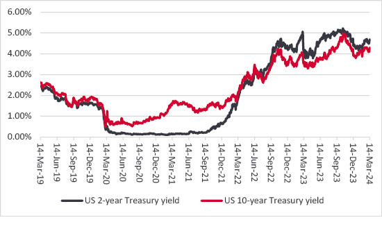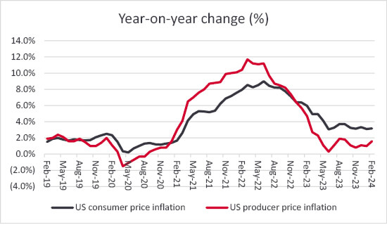• Second, the US inflation rate, as measured by the consumer price index, reaccelerated to 3.2% year-on-year in February, to mean that the rate of increase is higher now than it was in June 2022.
